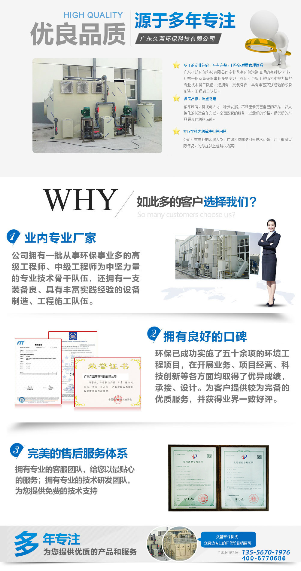 廣東久藍環保科技有限公司專業從事環保污染治理的高科技企業,擁有一批從事環保事業多的高級工程師、中級工程師為中堅力量的專業技術骨干隊伍,還擁有一支裝備良、具有豐富實踐經驗的設備制造、工程施工隊伍。同時,公司致力于與本專業大學、專業機構合作進行新工藝、新技術、新產品的引進、開發和研究,與國內一流專業水處理設備.包括不限于噴漆廢氣處理 、酸堿廢氣處理、 VOC廢氣處理設備 、注塑廢氣處理設備、 橡膠硫化廢氣處理設備、 生物除臭設備 、污水廠除臭設備...