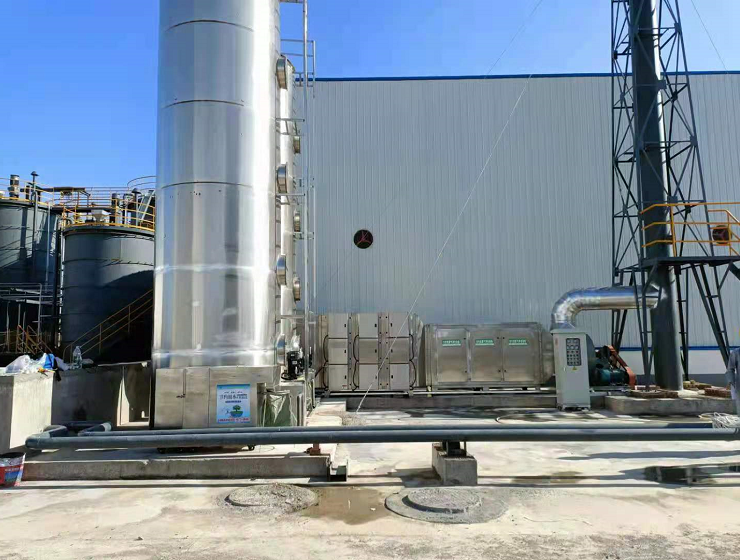 瀝青廢氣處理案例:洗滌塔加等離子廢氣凈化設備除油煙除臭工藝。